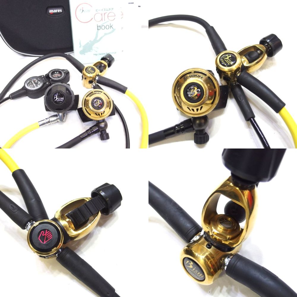 | 【OH込&保証付】 Bism☆超軽量 NELEUS チタンレギュレータセット ☆スパイラルフロー搭載により、軽く安定した吸気感を実現 ☆スウィングヘッドにより常に最高のくわえ心地を実現 ★2nd中央のパージボタンの面積を広く取り、緊急時でも動作を確実におこなえます ★TINコーティングで、他のチタンレギュとは違う高級感 【TINコーティングとは】 TiNの用途としてよく知られるのは、切削工具、機械部品、プラスチック成型、スポーツ用品、装飾品などのコーティング用途です。 特に切削工具ではもっともよく見るコーティングで、刃の部分に独特の黄金色がついているものは ほとんどがこのTiN(窒化チタン)の膜です。色が金色であることから装飾品に使われることもあります。 最高使用温度は一般に600℃までとされます。 コーティングとしては硬度は2000前後~2300程度まで出ることが知られています。 TiNは耐摩耗性や耐食性を付与するコーティングとしてよく知られます。 流量制御機構【Flow Control Valve】搭載! F.C.Vは初動抵抗を変化させずに流量のみをコントロールできます。 そのため『流量』と『吸い心地』を同時に満たすことができ、 個人の肺活量、呼吸パターン、潜水深度に合わせて、任意に流量調節が可能です。 [ファーストステージ] ・チタン、耐圧/250bar、 ・バランスツインピストン ・2LPポート、2PLPポート、2HPポート ・TINコーティング [セカンドステージ] ・チタン(フェイス部)/本体ケースPOM樹脂 ・F.C.V.(Flow Control Valve) ・TINコーティング セット内容 1st・2nd :Bism NELEUS RX3700G OCT :Bism re//brass OCT SK4300 ゲージ :Bism 2ゲージ(残圧計、コンパス) 付属品: ケアブック(1st/2nd&OCT)OHパーツ交換券4枚 取扱説明書 レギュバック(社外品) ◎詳細 ―中古品 ランク B-C― 通常使用程度のキズ、スレがありますが 十分実用性のある良品です。 ご購入・代金お支払後、オーバーホール開始いたします。 オーバーホール期間として発送まで15-20営業日ほどお時間いただきます。※定休日除く (ケアブックパーツ券1枚ずつ使用します。) 動作確認した上でご発送とさせていただき 届いてすぐにご使用いただける状態でお届け致します。 【保証に関して】 即決金額でご落札いただけた場合はオーバーホールから1年間に 通常ご使用で不具合、不良等が起こった場合は弊社にて保証対応いたします。 保証規定の書面を商品と同封いたします。 ※即決価格以下の場合は別料金でOHは可能です。 1年保証はありませんので予めご了承ください。 本商品は【中古品】になります。 以上、中古品であることをご理解の上ご落札ください。 ◆評価基準について◆ ランク N:未使用 S:1~10本使用 A:11~30本使用 B:31~50本使用 C:51~100本使用 D:101本以上使用 ~状態~ 新品:新品の状態であるもの(写真撮影で開封の場合あり) 未使用品:未使用の状態であるもの(写真撮影で開封の場合あり) 極美品:未使用に限りなく近いもの 美品:傷、日焼け、色落ちなど目立たない程度にあるもの 良品:傷、日焼け、色落ち、汚れなどの使用感があるもの 並品:動作に問題はないが、傷や汚れ、日焼けや色落ちが目立つもの ジャンク:動作確認が出来ない物、もしくは修理の必要な物 商品に対しては商品説明中の評価を添えて出品しております。 中古商品につき、お伝えしきれない細かな傷や汚れも御座います。 極力目立つ傷等は写真や文書でご説明致しますが 中古商品という特性をご理解いただきご購入のご検討をお願い致します。 |